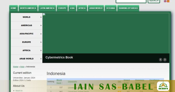 BANGKA,  TIPD.IAINSASBABEL.AC.ID - Institut Agama Islam Negeri Syaikh Abdurrahman Siddik Bangka Belitung (IAIN SAS Babel) menduduki peringkat kedua terbaik di Provinsi Kepulauan Bangka Belitung Versi Webometrics Ranking of World Universities edisi Januari 2024  berdasarkan situs pemeringkatan Webometrics. Senin,13/02/2024.